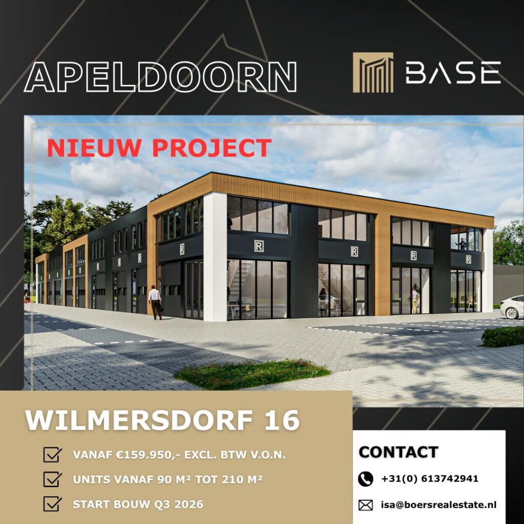 Met projecten zoals Wilmersdorf 16 ontwikkelt BASE hoogwaardige bedrijfsunits in Apeldoorn, waarbij kwaliteit, flexibiliteit en duurzaamheid centraal staan. De casco oplevering en flexibele indelingsmogelijkheden bieden ondernemers en beleggers maximale vrijheid om hun bedrijfsruimte af te stemmen op de toekomst.